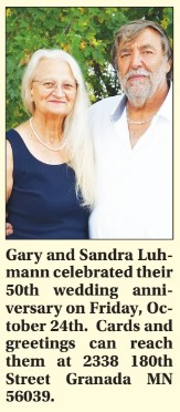 But we have one classmate who recently celebrated a very happy time. Sandy Hanson Luhmann and her husband, Gary, celebrated 50 years of (hopefully) wedded bliss last month! Congratulations, Sandy and Gary!